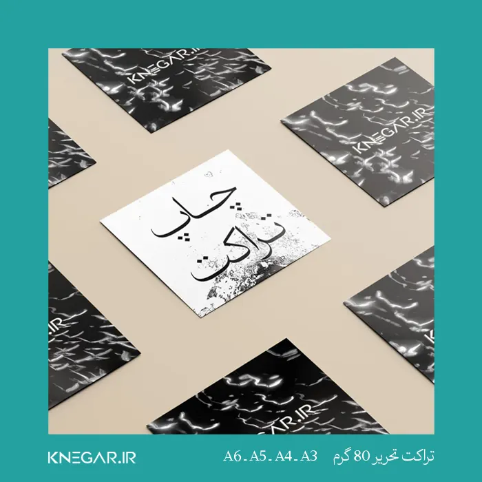تراکت تحریر ۸۰ گرم مناسب معرفی محصولات و خدمات فروشگاهها و برندهاست و باعث دیده شدن بهتر تبلیغات شما میشود.